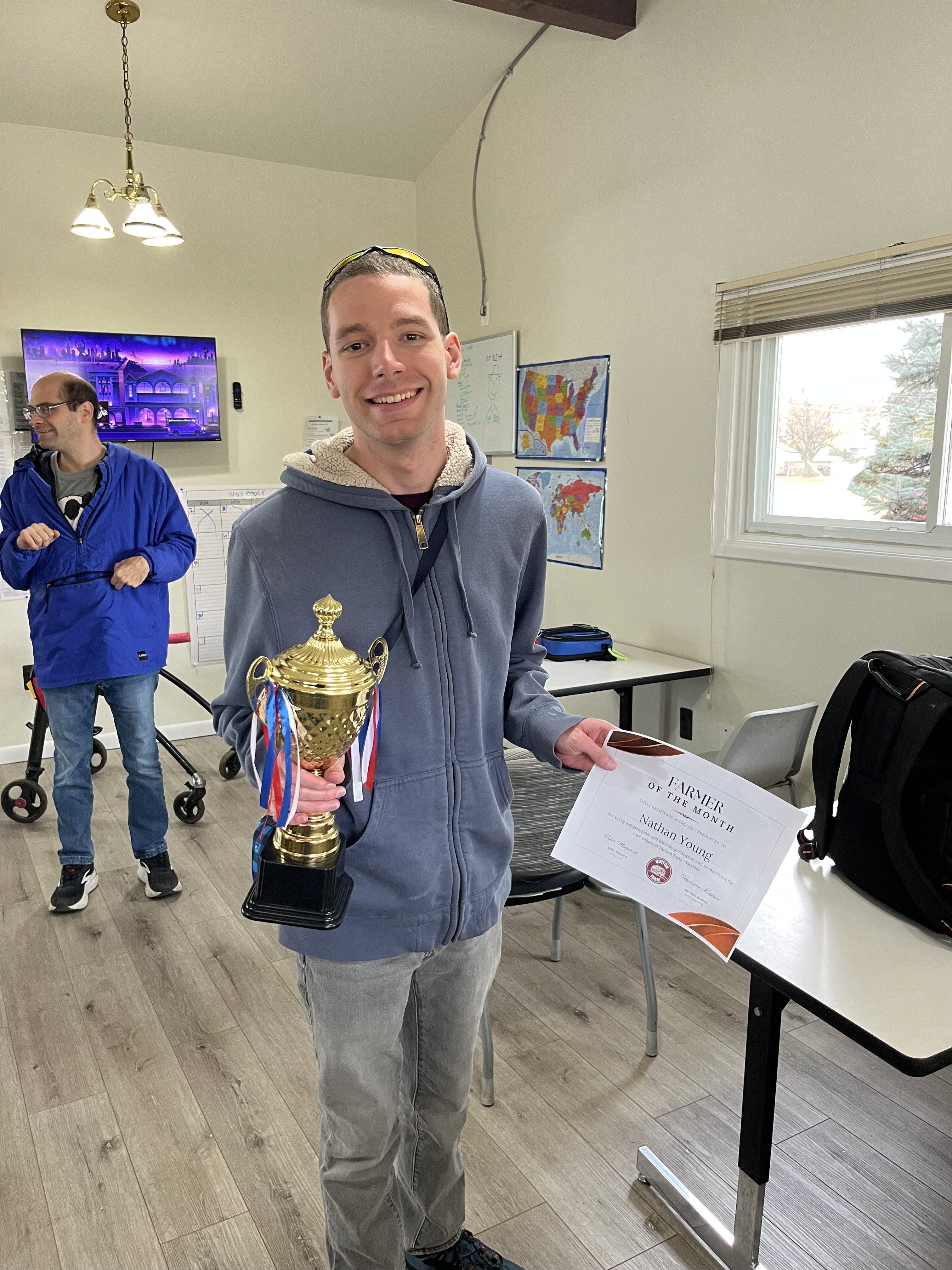 Novembers farmer of the month for Macomb is Nathan Young, he has been nothing but a massive help with gardening and other farm tasks and always has a positive attitude.